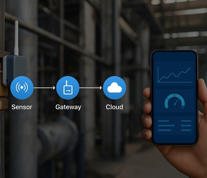 - Battery-Free Sensors – Installed directly on-site, no wiring or maintenance.
